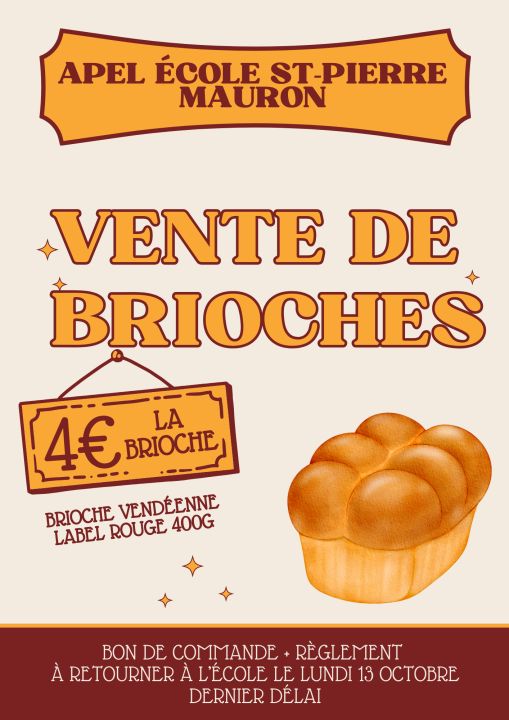 Un petit rappel : la date limite pour rapporter les bons de commande de la vente de brioches est demain (13/10/2025).